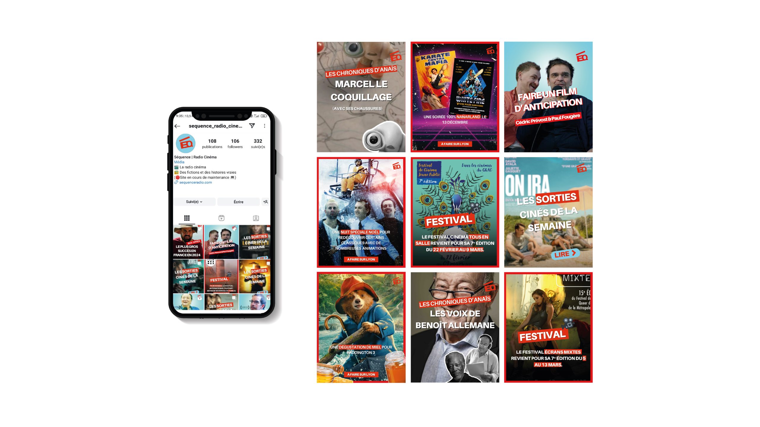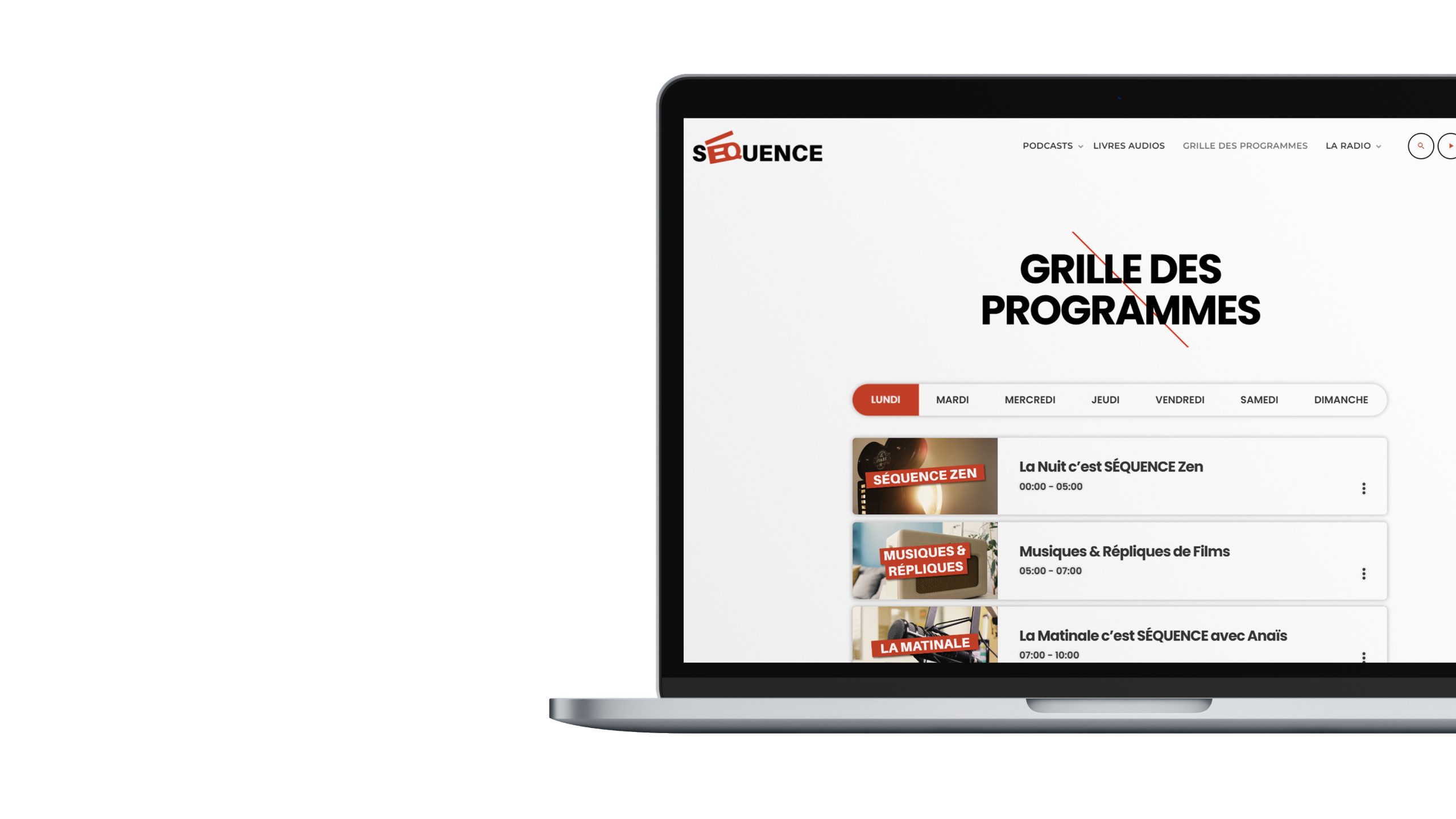 Refonte de l’identité visuelle de Séquence (107.1 FM), une radio souhaitant moderniser son image et affirmer son positionnement en tant que média dédié au cinéma. Le projet comprend la création d’un nouveau logo et d’une charte graphique, le développement du site internet, l’habillage des réseaux sociaux, ainsi que la prise en charge de la partie audiovisuelle et la création d’une banque d’images.